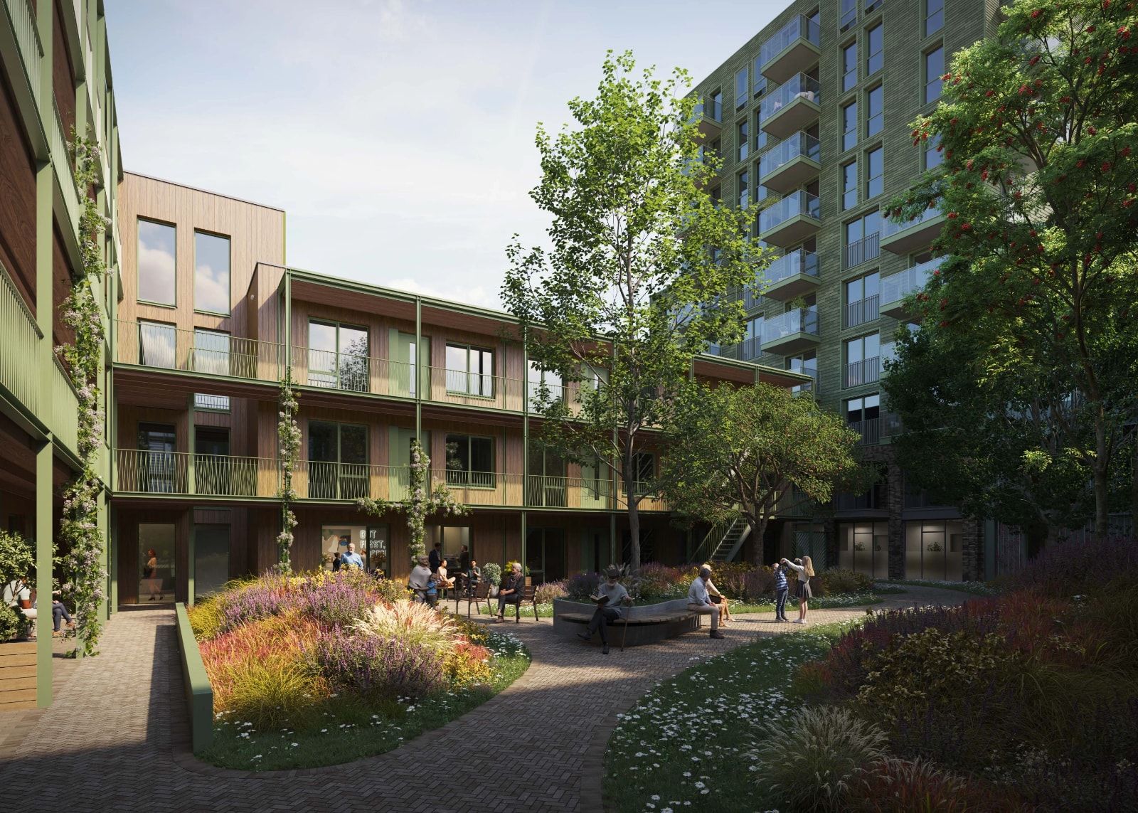 Het gebouw krijgt grasdaken en een groene binnentuin. Dat helpt het gebouw koel houden in de zomer. De gebouwen worden in elkaar gezet met materialen die kant-en-klaar uit de fabriek komen. Dat scheelt veel bouwtijd en geeft minder afval.